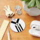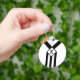 Black Stripes and Chevrons with Monogram on White Key Ring
