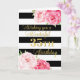 Happy 35th birthday card with pink watercolor flowers, black stripes and thoughtful verse.