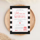 Black and white stripes with coral pink accents create a feminine and masculine house warming party invitation design. "Heart" and "Key" elements are move-able when you click "customise it"
