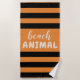 Black stripes, while mid part is open for your custom text. By default it says "beach ANIMAL". Note that the orange background can be recolored by adjusting this product's base colour.