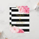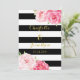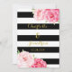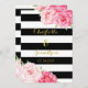Wedding invitation custom template cards in black and white stripes pattern with pink fuchsia hot pink rustic vintage flowers and gold handwritten style vintage text. Customise these invitations with your wedding details. Available in matching products for all of your wedding needs.