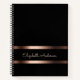 A stylish notebook with blank pages decorated with a bronze coloured frame. Add your name. The name is written with an elegant, modern hand lettered style script. For both men and women. Perfect for business, home office, students and school work for taking notes, writing down ideas, sketching, doodling and drawing.