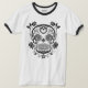 This Day of the Dead sugar skull design is surrounded by four tribal roses. The skull is comprised of black lines and is decorated with flowing swirls and dot patterns. The circular eyes are made of flower pedals with five point stars inside. A single star appears at the bottom the design, anchoring this symmetrical pattern. This simple yet elegant sugar skull makes a stylish shirt design.