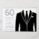 Black Suit & Tie 60th Birthday Party Real Silver Foil Invitation