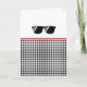 Sunglasses Silhouette design in black with chequerboard pattern in black and white, red trim. Custom ADD YOUR OWN MESSAGE in red inside. Easy to personalise text, text colour, trim colour. Great card for ANY occasion. Coach, Grad, New Job, Birthday, anything cool. Modern, Cool, Fun. Mix and match entire Collections by TMCdesigns.
