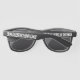 Black sunglasses with Greek key meander pattern on legs. 100% UV sunglasses with geometric design. Fun print sunglasses for summer. Cool looking shades. Personalise with name or monogram initials. Add your own unique text on the sides. Available in many stylish colour combinations. Trendy Wayfarer style design with thick frame / arms. Novelty glasses for men and women. Also great for sunny outdoor events, garden wedding, beach party, teams, vacation, trips, boating and more. Clear transparent or dark black lens options. Change quantity to get the cheaper bulk discount price.