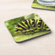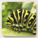 Here is a set of cork coasters featuring the caterpillar of the Black Swallowtail Butterfly (Papilio polyxenes), also known as the American Swallowtail, Parsnip Swallowtail or Parsley Worm. This species lives and dines on members of the parsley family (including carrots, dill, fennel and parsnips). What a lovely green creature, with repeating black bands spotted with gold and yellow that create an interesting abstract pattern. This one is on a leaf surrounded by intense green foliage.