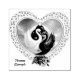 Black swan and a white swan in the centre of a heart composed of many small hearts. The contrast between the black and white swan symbolises the duality of light and darkness, while their presence together in the heart represents harmony and unity, a message of love, balance and connection.