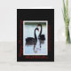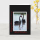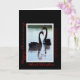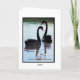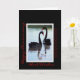 Two black swans form a heart in a striking display. You can personalise this card by adding names at the top of card. The script font on the card is Liorah in red.