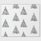 Black Swirls Christmas Trees on White Wrapping Paper