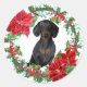 Black Tan Dachshund Poinsettia Holiday Wreath Classic Round Sticker