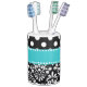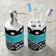Show off your style in a fun way with this teal and black dots and chevron soap dispenser and toothbrush holder set.