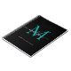 Modern Black Teal Green Monogram Script Name Initial Notebook