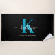This simple, elegant black beach towel with your first name in a trendy script font in white, your first initial in a modern cap font in teal, and your full name in CAPS in white is perfect for you. It's stylish and trendy and yet very classic. Get a bunch for the beach or for your pool and deck area. They'll come in so handy.