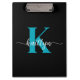 This simple, elegant black 12.5 x 9 clipboard with your first name in a trendy script font in white and your first initial in a modern cap font in teal is perfect for you. It's stylish and trendy and yet very classic. It will come in handy in so many situations. Perfect for work, home, school.