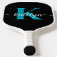This simple, elegant black pickleball paddle with your first name in a trendy script font in white and your first initial in a modern cap font in teal is perfect for you. It's stylish and trendy and yet very classic. It's unique - like you!