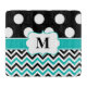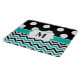 Show off your style in a fun way with this black and teal polka dots and chevron monogram cutting board.