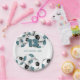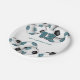 These soccer themed birthday party paper plates are fully customisable and feature clusters of teal, black and white soccer balls at the top and bottom edges - personalise with your custom text - by katz_d_zynes
