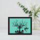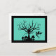 Send a little spooky greeting with this creepy fairy postcard. Black and teal silhouette design depicts a small fairy flying near a tree with curly, swirled branches. Small toadstools of varying sizes grow below the tree. Design is framed by a black border. Perfect gift for any Halloween, fairy, or fantasy lover. Customise and/or personalise the design with your own text.