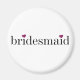 Bridesmaid magnet with black text, fuschia hearts.