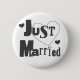Cool black text design with hearts Just Married T-shirts, mugs, stickers, magnets, buttons, bags, and more, perfect for the bride and groom, make lovely honeymoon T-shirts!