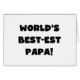 Black text World's Best-est Papa T-shirts, mugs, hoodies, cards, tote bags, magnets, keepsakes, and other world's best papa gear.