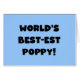 Black text World's Best-est Poppy T-shirts, mugs, hoodies, cards, tote bags, magnets, keepsakes, and other world's best poppy gear.