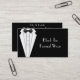 Simple yet very elegant for formal wear or rental businesses - features stylised white tuxedo and black bow tie with diamond buttons on shirt - No real diamonds are on this card- these are created to appear real by the artist.