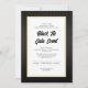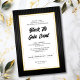 This Black Tie Gala dinner invitation features a stylish theme adorned with a black background and light grey vertical stripes. A white box with a gold border features custom text for you to add your event details. The design offers a sense of class and sophistication, setting the tone for a memorable event.