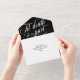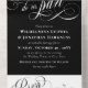 Elegant goth all in one wedding invitation in black and white with swirly calligraphy,. An elegant wedding invitation for a Halloween wedding, goth wedding, or similar.