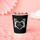Black skeleton heart wedding disposable paper cups with a "til death do us part" theme. Ideal supplies for a wedding party, rehearsal, or casual reception. Personalise the inside of the heart with the coupe's initials and the date.