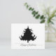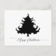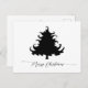 Black Christmas tree postcard greeting. Black and white, minimalist design. "Merry Christmas" greeting on the front, with a message template on the back. You may change the greeting, but the glyphs (long lines at the beginning and end) will be gone. A simple, and affordable way to reach out to friends and family at the holidays.