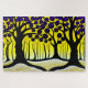 A captivating design that exudes enchantment and whimsy. Inspired by nature's mysteries, this extraordinary pattern showcases majestic black trees, their silhouettes stretching towards an azure sky. Amidst their branches, clusters of vivid purple fruits dangle, casting an alluring spell upon the beholder. The mesmerising contrast is elevated by a luminous yellow background, reminiscent of sunlight at twilight.