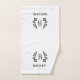 Black and white trellis patterned bath towel set personalised with your family monogram or other text in a rustic laurel branch. Use the design tools to choose any background colours, edit the text fonts and colours or upload your own photos to create a one of a kind design. The perfect touch for your modern farmhouse bathroom decor!