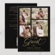 Black Trendy Collage 4 Photos Luxury Script Wedding Invitation Card with Envelope.