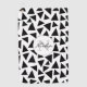 Black Triangles Personalised Golf Towel. This design features black geometric triangles on white background. Personalise with your name and initials.