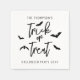 Add a festive touch to your Halloween party with these stylish paper napkins. Featuring Trick or Treat in sleek black script typography with playful bat silhouettes, the design includes top and bottom personalizable text areas where you can add any family name or custom message, like Halloween Party 20YY. Perfect for seasonal gatherings, spooky celebrations or creating memorable Halloween moments with a modern and minimalist look.