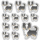 Destei's original cartoon illustration of a black tricolor long coat Chihuahua breed dog. The design is placed 12 times on the sheet in three different sizes. There is one bigger dog, three medium size dogs and eight small size dogs.