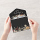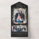 Black Trifold Holiday Card. Simplify your holiday greetings with our all-in-one send and seal card from the Black Boho Botanical Christmas Holiday Card Collection. Featuring a photo collage layout for four personal photos, this card combines convenience with festive charm. Personalise it with your cherished moments and create a memorable holiday greeting.