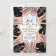 Black Tropical Leaves & Coral Peach Gold Birthday Invitation