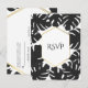 Black Tropical Leaves White & Gold Wedding RSVP Invitation Postcard