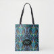 Black Turquoise Teal Modern Damask Floral Monogram Tote Bag