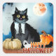 Black Tuxedo Cat and Pumpkins Square Sticker