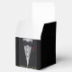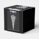 A glitery black tuxedo gift box with a red rose makes a very elegant design for a wedding favour box, for birthdays, bachelor and bachelorette parties and other special events.