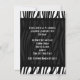 Stylish 50th birthday party invitation for men, features a handsome Black and white zebra stripe background with classy tuxedo and bowtie design. Sleek contemporary design is perfect for a custom formal dinner or dancing soiree fiftieth celebration for him.