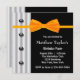 Black white tuxedo orange bow tie mens birthday party invitations.