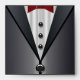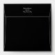 Elegant black tuxedo with a white shirt and red bow tie square formal envelope. Black interior and return address on the back flap.