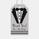 Add an elegant touch to your guest favour- thank you gifts, with this formal, black bow tie and black tuxedo, guest favour tag. Personalised with your text on the front and back. Grey and white striped background. Perfect for a black tie event, wedding guest favour thank you or fundraiser. To see matching products- Please visit my store "The Hungarican Princess" at www.zazzle.com/hungaricanprincess*. Look in my "Black Tuxedo" department category. Thank you!