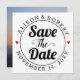 Black typography and red hearts photo on the back Save the Date announcement
