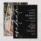 Elegant white graduation invitation with white text in an elegant typography design, personalised with one photo on the back. Double sided graduation invitation with a black background. 2 in 1 graduation announcement and invitation personalised with a photo on the back, and the graduate's name in white. Invite friends and family to a graduation celebration with this black and white typography graduation party invitation printed with a photo of the graduate on the back.